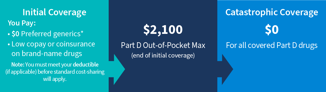 As a result of the IRA, individuals with Medicare Part D no longer face the burden of the 'donut hole' or coverage gap. This means you won't encounter an increase in your out-of-pocket costs for prescription drugs once you reach the initial coverage limit. This more predictable benefit structure ensures your annual out-of-pocket spending on covered Part D drugs is capped at $2,100 in 2026. Once you reach this limit, you will enter the catastrophic phase of coverage and you will pay nothing for Part D eligible drugs the rest of the year.